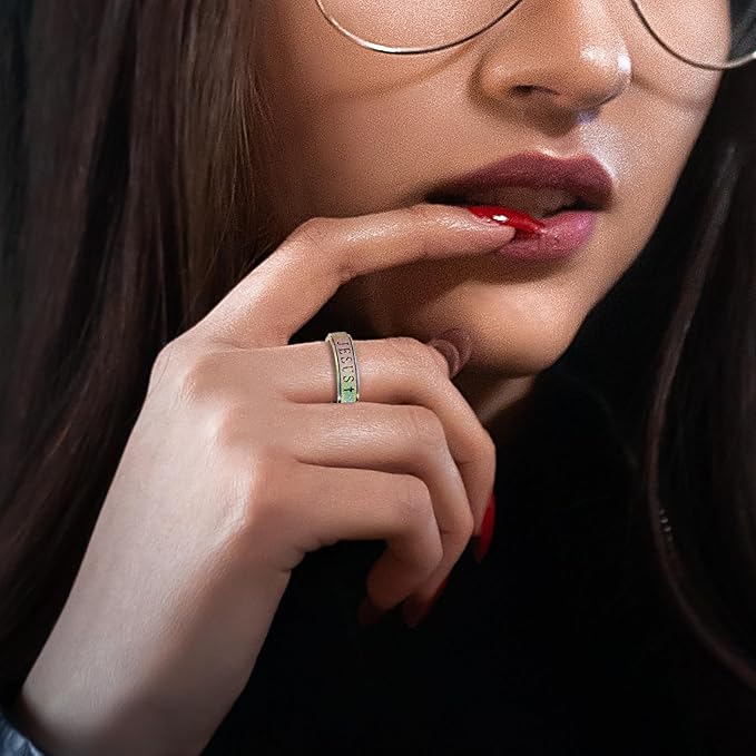 - These Jesus spinner rings are made of stainless steel,hand polished surface, sand blast finished, hollowed the words, deepth:6mm(15/64"), gold silver available now,and rose gold black rainbow color will in stock soon