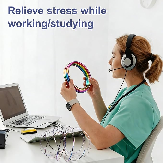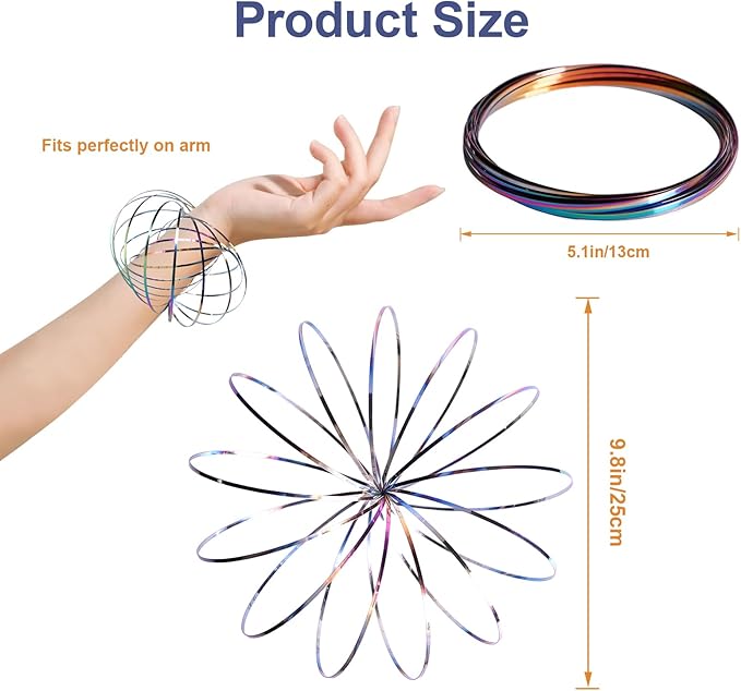 - Hypnotic Kinetic Motion for Instant Stress Relief: Experience the mesmerizing, flowing motion of this Magic Flow Ring! It glides down your arms, creating a 3D visual illusion and engaging tactile experience. This fidget toy instantly captures focus, alleviates anxiety & tension, and serves as an ideal sensory tool for ADHD, concentration, and mindfulness.
